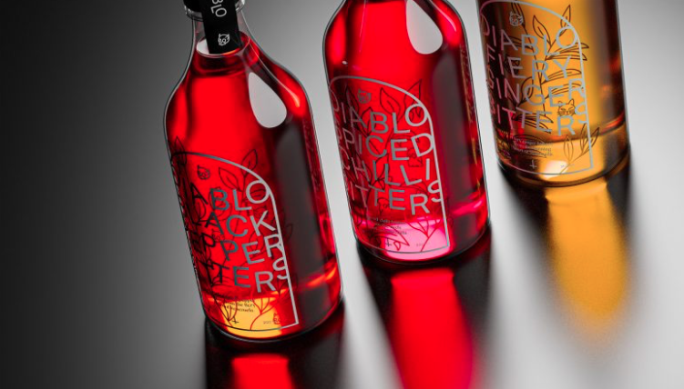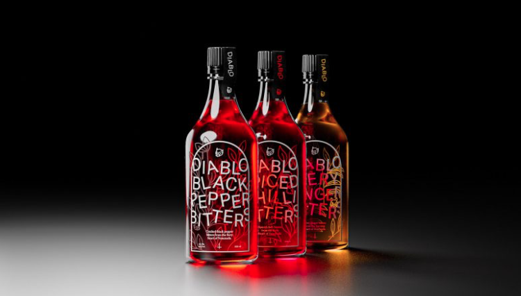 瓶子的品牌标签设计与节日和狂欢节的气氛平行。 白天,一切似乎都安静了下来,插图逐渐淡出了背景,但是当夜幕降临时,标签上的鲜活紫外线和深色墨水从内部照亮了瓶子。