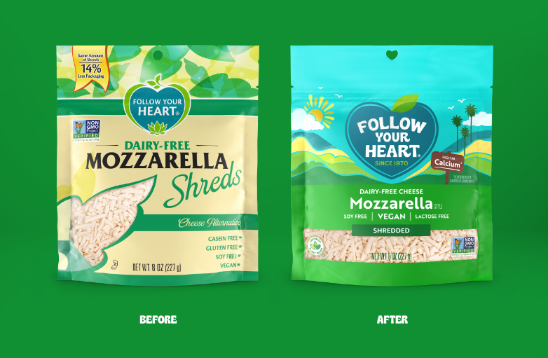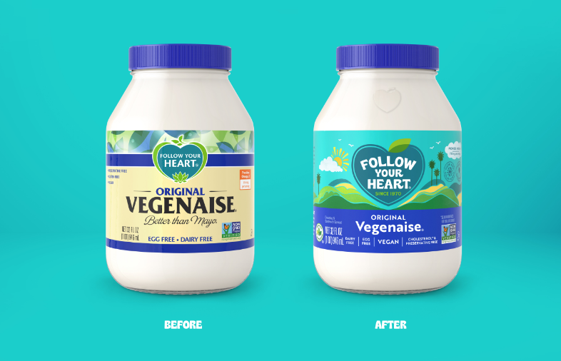 追随你的心是这些品牌之一,成立于1970年,在阳光明媚,注重健康的南加州,作为一个天然食品三明治柜台。最终,这家小公司开始制作一款纯素蛋黄酱,味道很棒。从那时起,产品系列已经扩大到包括其他素食替代三明治配料,如奶酪,鸡蛋和敷料。但是,跟随你的心的品牌身份已经变得有点过时,然而,公司带来了蔡斯设计小组为了给这个身份一个当代的感觉,同时也保留和提升,跟随你的心脏的五年的遗产。