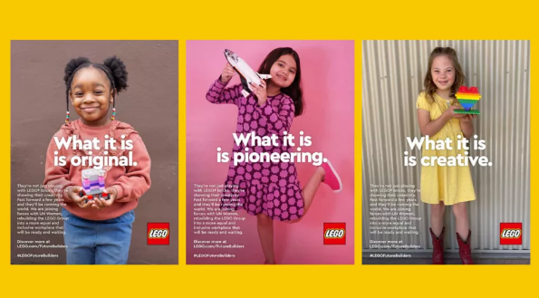 乐高的网站上已经出现了一些令人愉快的例子,2021年,年轻女孩们就在这里拿着自己的作品,还有一些稍作改动的头条新闻,比如“什么是原创的”和“什么是开创性的”。“再过几年,”每个广告设计的副本都写着,“他们将统治世界。”