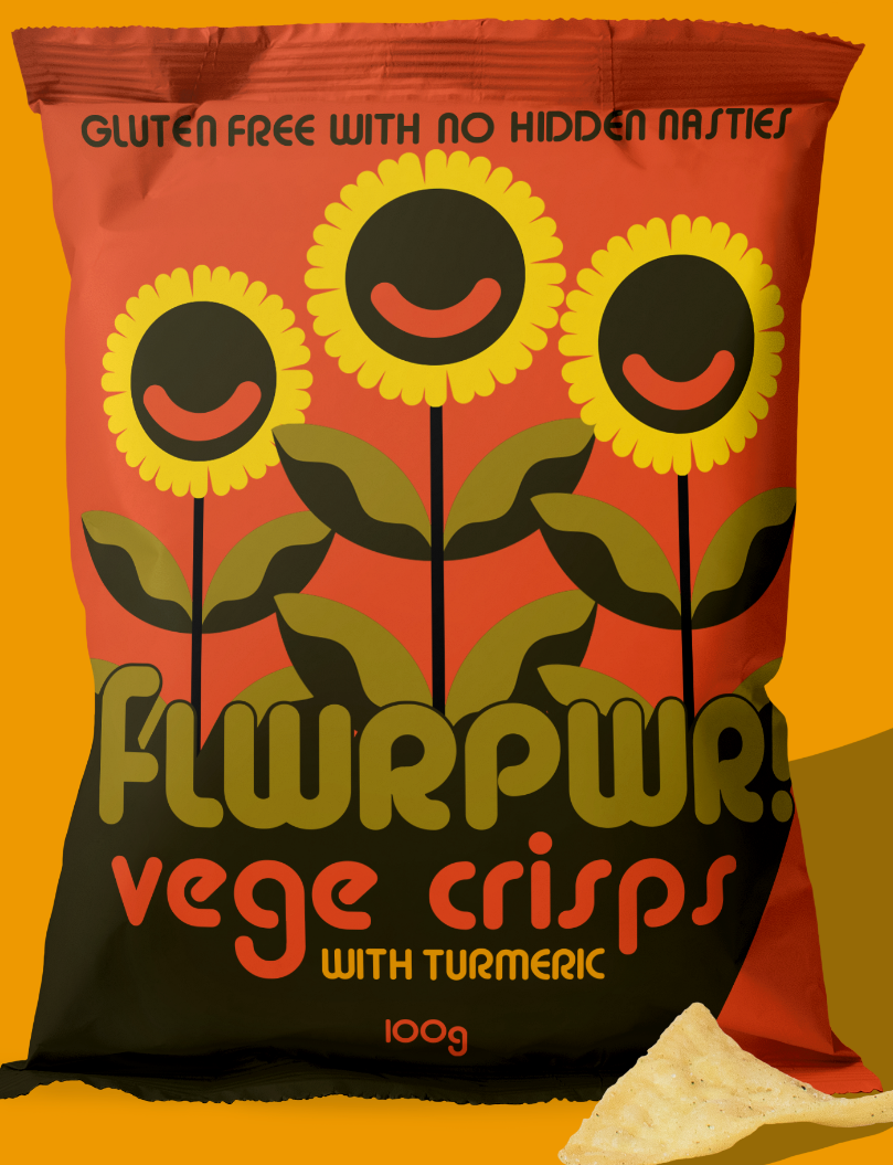 圆形字体是对传统60年代和70年代风格的一种认可,这增加了该品牌形象设计中同名品牌的“花力”主题。每种颜色都有很好的对比,形成了一个强有力的品牌存在。复古的存在与无麸质产品类别的现代方面并驾齐驱。这很好地使维格有别于竞争对手的蔬菜薯片品种。