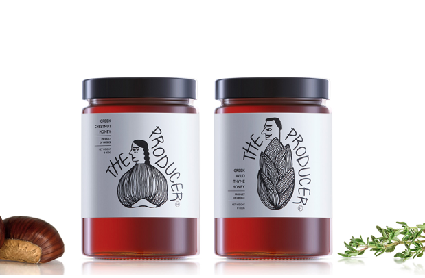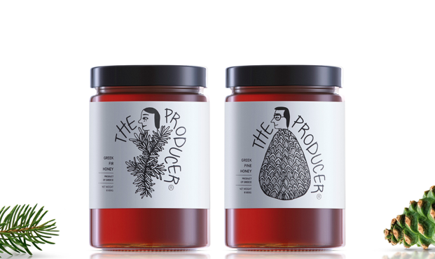 混合排版和黑白印刷的最小包装设计总结了这种限量生产的纯、天然、正宗、高价值的希腊蜂蜜品牌设计理念。