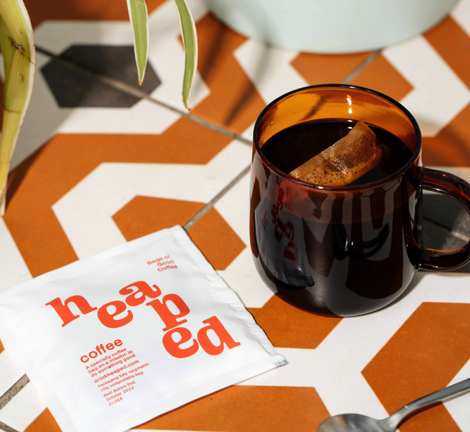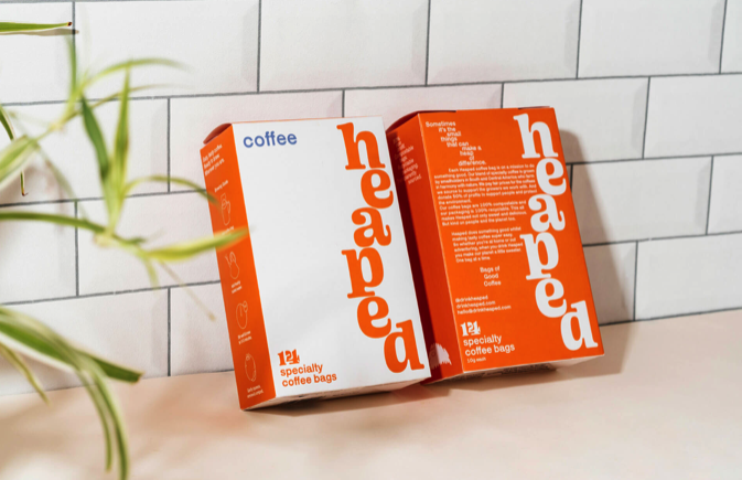 这款方便速溶咖啡包不是将小事可以带来很大的不同。品牌标志设计以可持续性、透明度和趣味性作为其核心价值观,我们创造了“Heaped”一个充满个性的俏皮和明亮的咖啡品牌标志设计,请原谅双关语。 鲜艳的色彩、有趣的排版和可回收的包装只是我们在品牌标志设计中引入的几个亮点,旨在让“Heaped”栩栩如生。