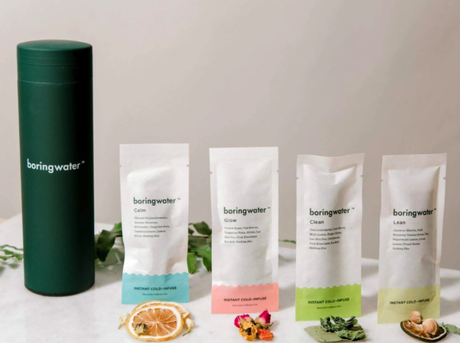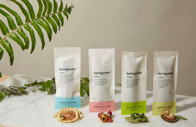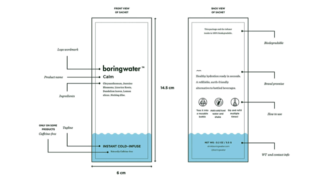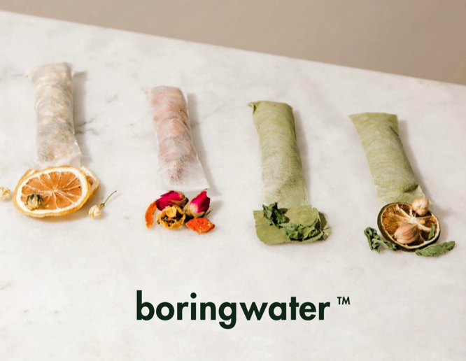 可重复灌装的环保替代瓶装饮料和健康补水产品,设计一款产品标志设计和包装设计,标志设计直接使用英文“Boringwater ”,更能体现这个产品是富含化学物质的无糖汽水、含糖果汁和高热量冰沙的健康替代品。尤其是那种装在一次性塑料容器里的。每个冷浸器都设计为可填充 5-6 次,不再有乏味的水,也不再有塑料瓶。