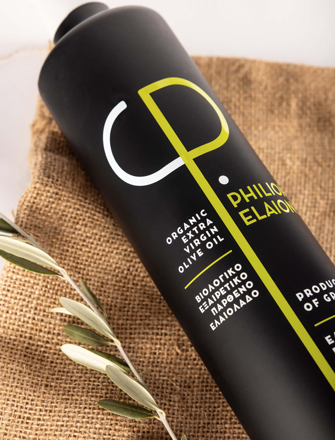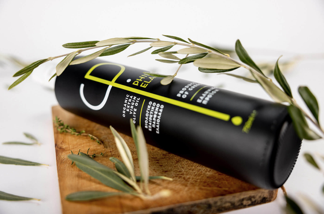 品牌标志设计的组成部分还包括“特级初榨橄榄油”的标志,当然还有名字,两者都使用了干净、几何但友好的字体。我们的灵感来自石油的金色和树干的棕色。对于瓶子的设计,我们选择解构标志的元素,将它们放置在不同的位置,重点放在大写希腊字母Φ上,这突出了产品的起源和诞生。该瓶在生产过程中上漆,以保护油的酸性,使其具有优质产品的声誉,然后用丝网印刷法印刷,以增强标识的亮度和大胆度,并增强其作为一个整体的身份。