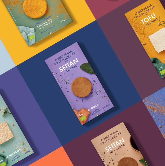 产品的新视觉标志设计——色彩丰富、充满活力、充满活力的品牌标志设计——旨在与消费者对话。“素食产品可以提供美味、有趣和创意的菜肴!”这些图像是一些小型艺术作品,将产品置于自然元素(如树叶、香料、面粉和种子)的中心位置,使构图生动、丰富。由于食谱图标和信息图表突出了产品的特点,标志设计清晰有效,信息简单直接。色彩鲜艳,充满活力,同时保持自然和有机的灵魂。
