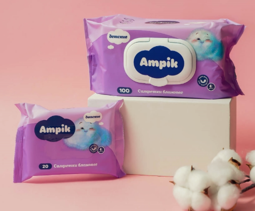 Ampik 是湿纸巾的品牌。 它代表卫生产品,例如湿巾、棉花、棉签、棉盘等,由棉花制成。 我们的任务是为要在本地和国外销售的产品包装设计和标志设计。 品牌命名——Ampik,在亚美尼亚语中意为云。 在产品包装设计上用到蓬松的云彩字符来代表柔软的棉片的想法,标志设计也形成了蓝色的云彩。 此外,产品线的包装设计中更多地采用柔和的色彩和薰衣草插图,传达清洁和柔软的理念。