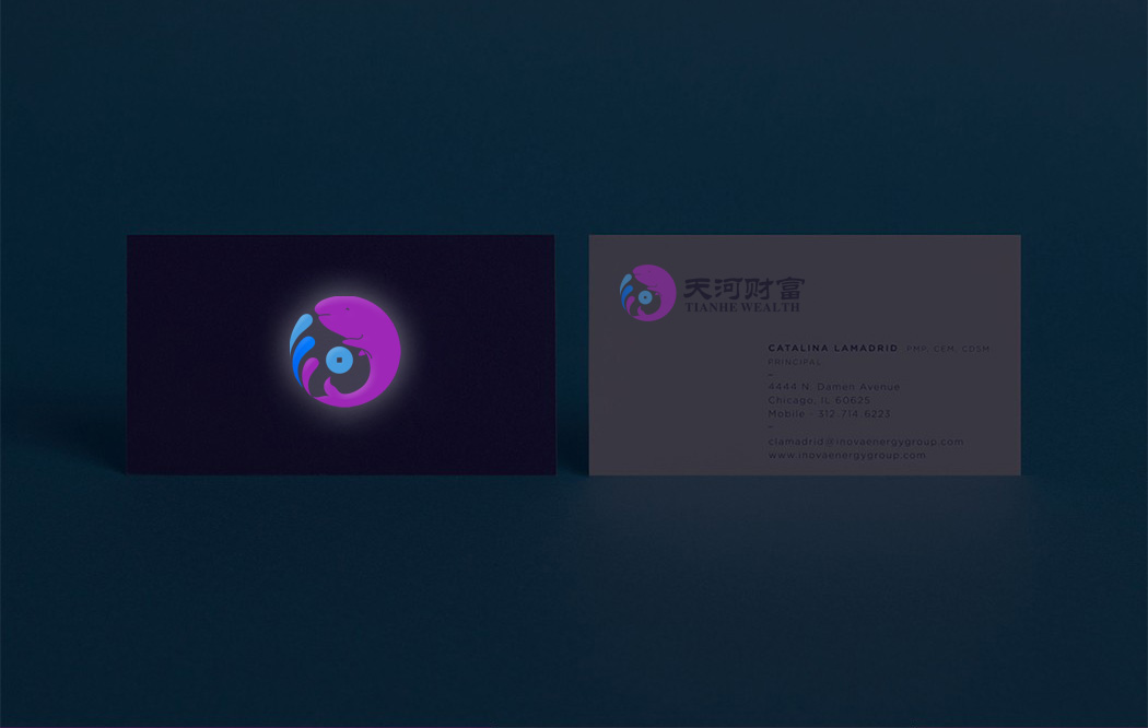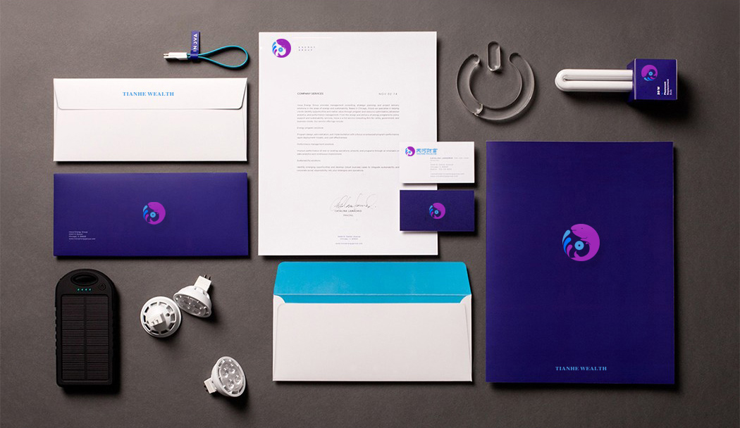 【创意源:河+水+巨鲸】标志图案为天河财富“河”的字型,通过设计师根据公司定位合理创意变化而成。标志整体国际化、大气稳重,时尚美观。图形与标准色彩具有热情与亲和力感。